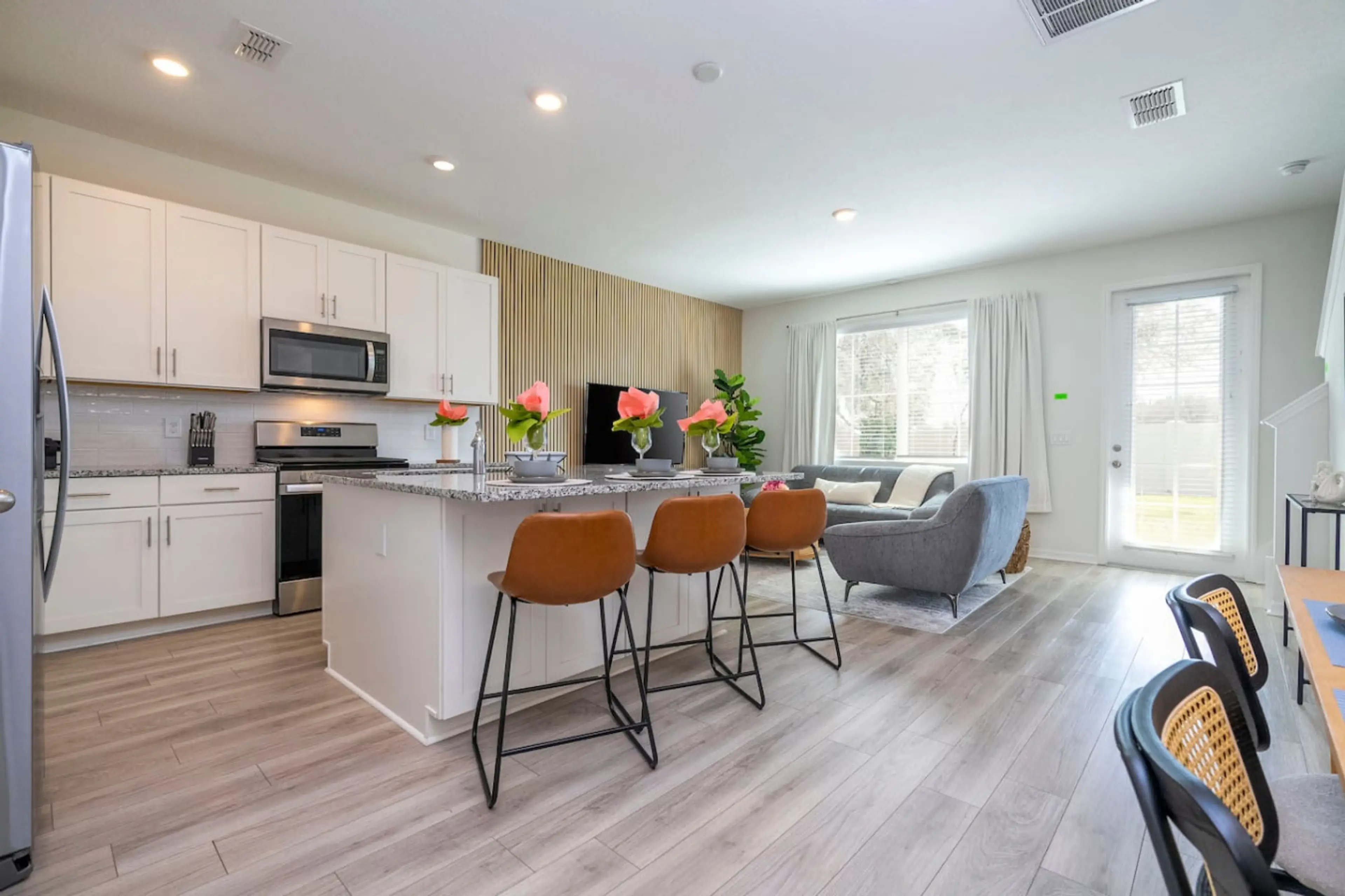Welcome to the Enclave at Festival! Our charming 3-bedroom, 2.5-bathroom home features a modern design, comfortable bedrooms, and a fully equipped kitchen. Relax in the bright living room or enjoy meals in the elegant dining area. Outside, you'll find a backyard with a BBQ grill. Conveniently locate...